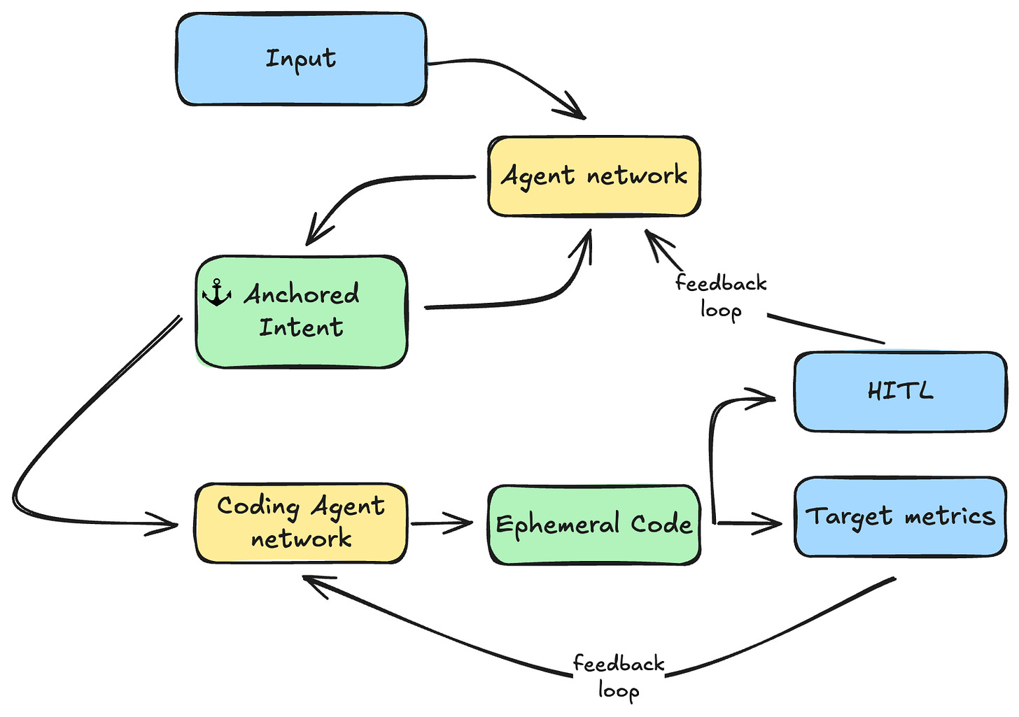 The idea of learning and re-generating the code based on usage, means that majority of the work would be around having a tight feedback loop that allows your agents to regenerate the ephemeral code upon issue discovery to improve a target metric, for example network performance, FPS, etc. Setting up and managing the feedback loop is going to be the majority of the work, and why you need to be conscious there’s an exploding need of better quality solutions, i.e. the quality bar will keep rising.